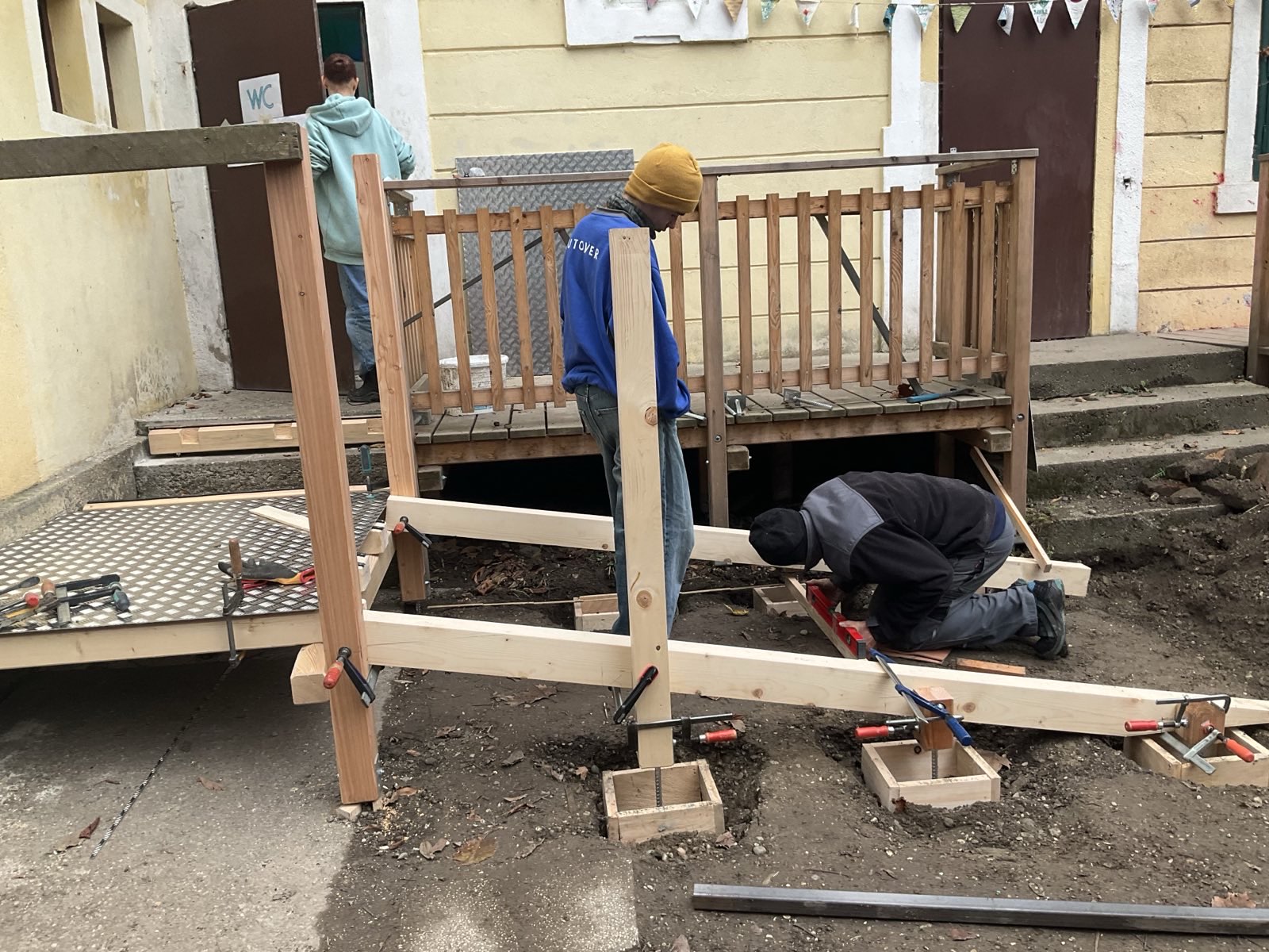 Schülerinnen und Schüler aus C34 haben den lang ersehnten Wunsch, den Lernort in der Natur barrierefreier zu machen, in die Tat umgesetzt.