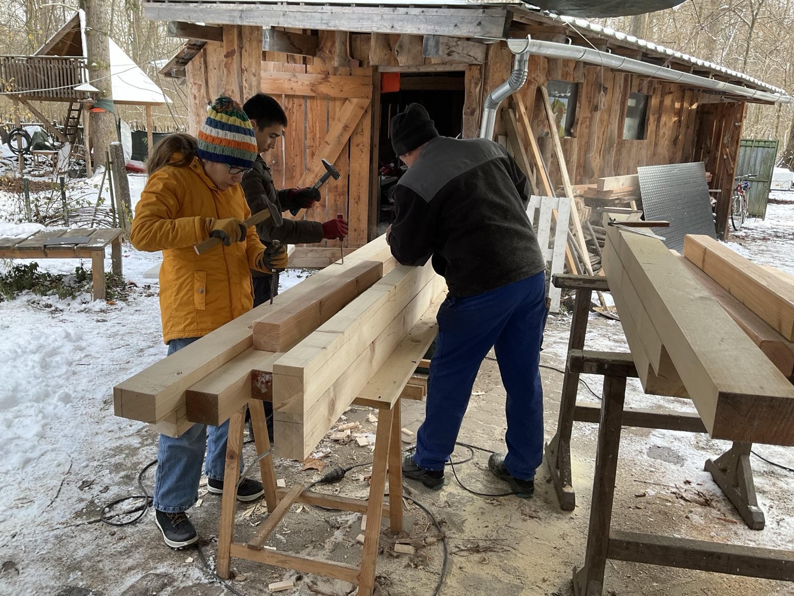 Jeden Tag wurde von den Jugendlichen dafür gesorgt, dass Holz für den Ofen zur Verfügung steht. Somit war es im Lernraum bzw. in der Küche warm genug, um kurze Aufwärmpausen einzulegen.